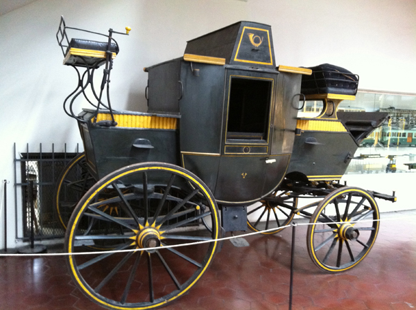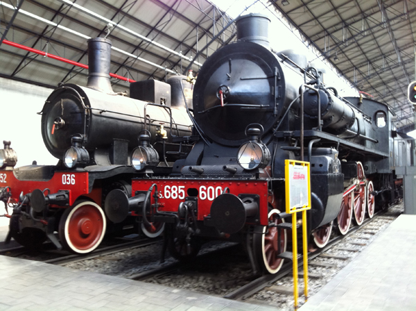 離開M館後就是一個F展館,是一個巨大的車棚,展出蒸氣火車、馬車等18、19世紀陸上交通工具,某些火車的輪子比我還高。